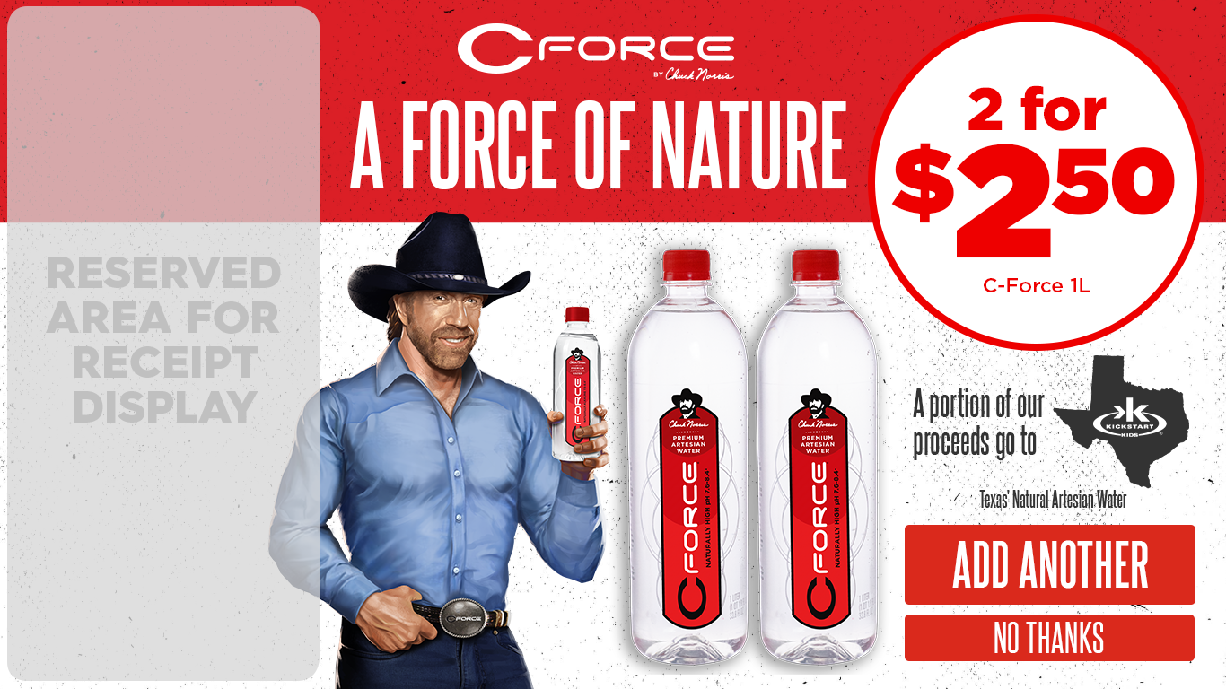 In-Transaction ad with C-Force. I received each element on the screen as individual png files. Based on the the C-Force brand book I created these screens to help entice the customer to buy a second bottle.
