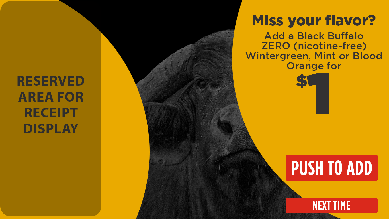 The second image is an In-Transaction ad for Black Buffalo ZERO. I did not receive any images and created this based on their brand identity I found on their website. Purpose is to get customers to purchase one.